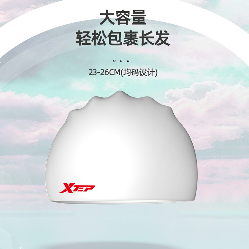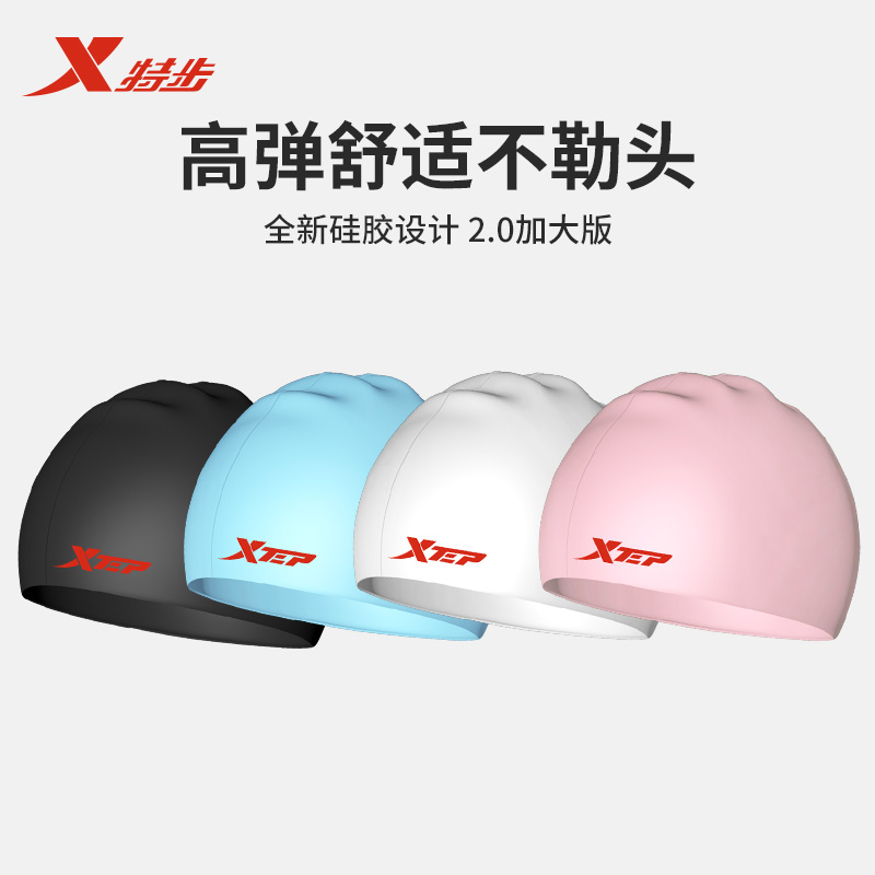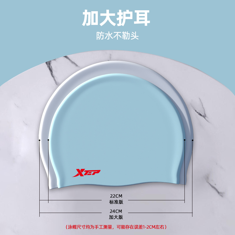 特步泳帽女款 长发专用硅胶护耳大头围成人泳帽男 防水不勒头加大款