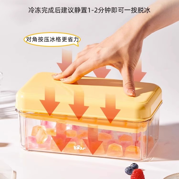 小熊冻冰制冰神器冰块模具食品级按压式 冰格制冰盒家用冰箱储存盒