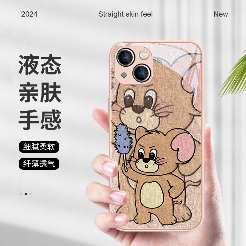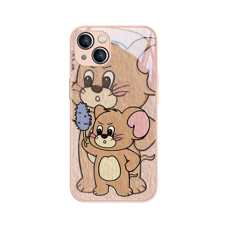 适用iphone13手机壳猫和老鼠苹果15情侣苹果14跪搓衣板12mini汤姆11promax可爱xsmax创意xr卡通x玻璃8plus