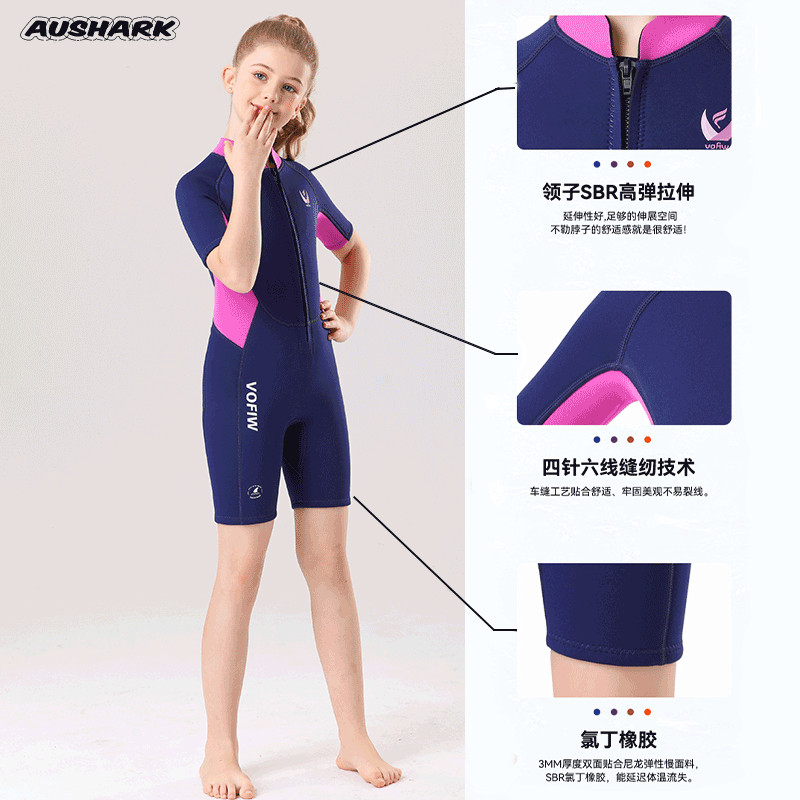 AUS新儿童潜水服3mm短袖 泳衣连体防寒保暖加厚游泳冲浪防晒水母衣