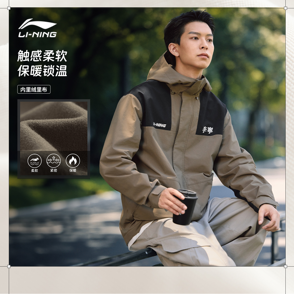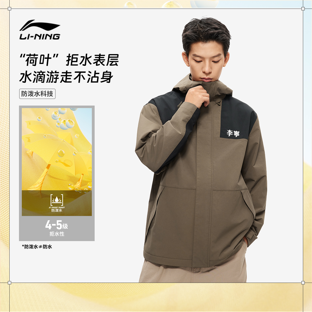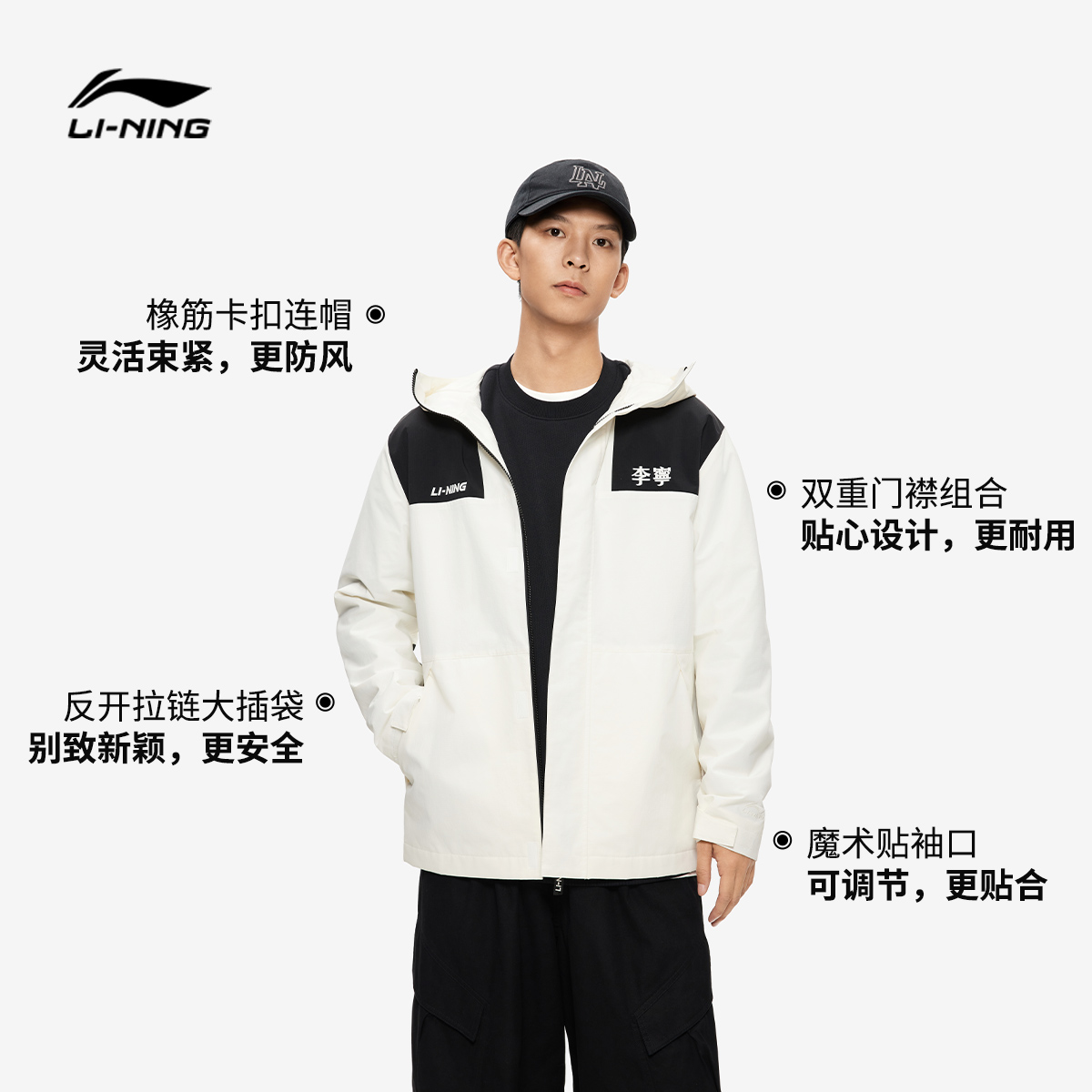 李宁荷叶风衣 情侣户外防风防泼水加绒运动外套连帽夹克男女 秋季