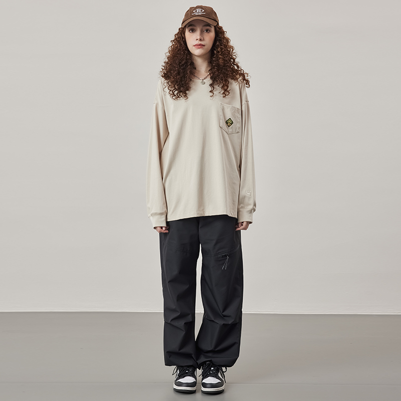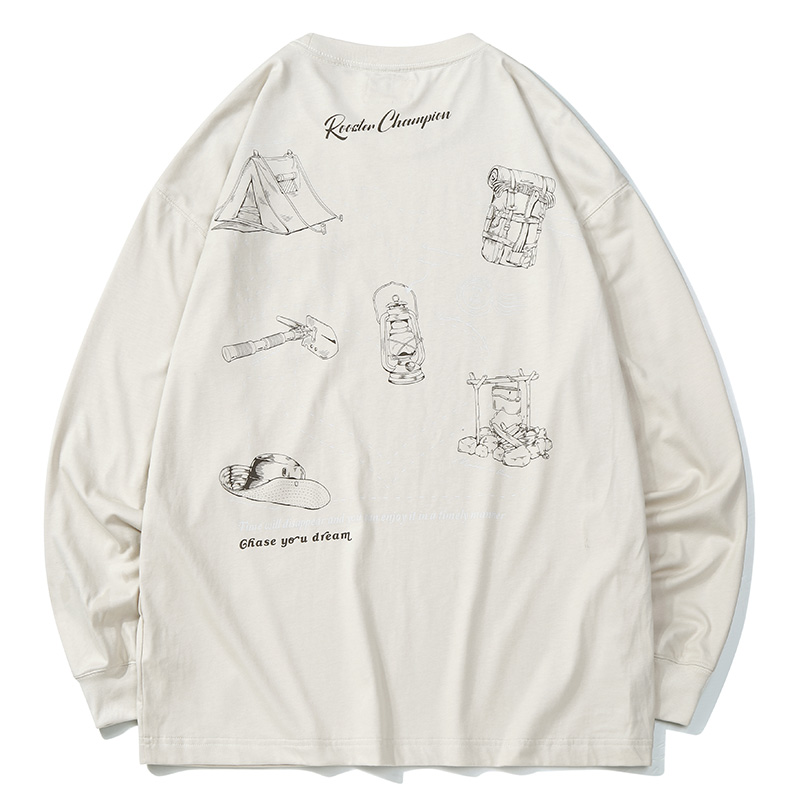 宽松浅杏色山系户外百搭情侣上衣 秋季 公鸡冠军长袖 T恤男2024新款