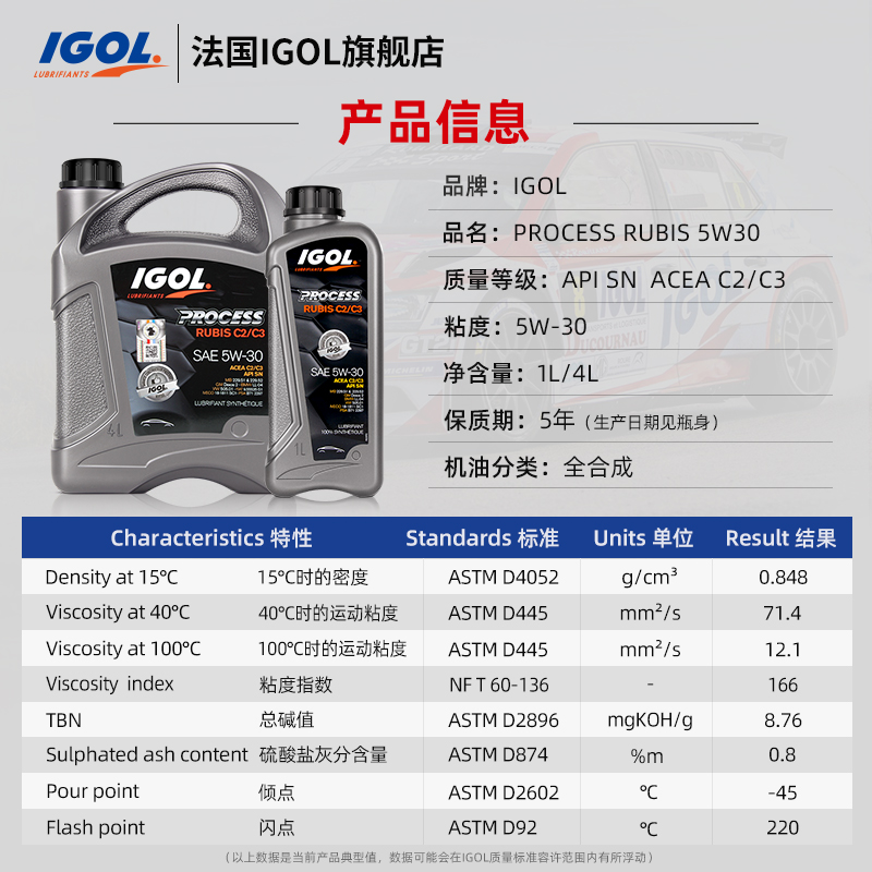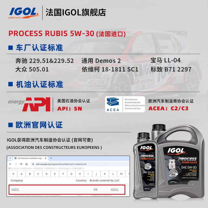 IGOL高戈原装 进口鹏程全合成5W30汽车机油SN宝马奥迪大众奔驰C2C3