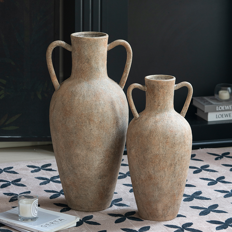古风民宿侘寂风落地大花瓶陶瓷客厅摆件软装 高级感复古粗陶土陶罐