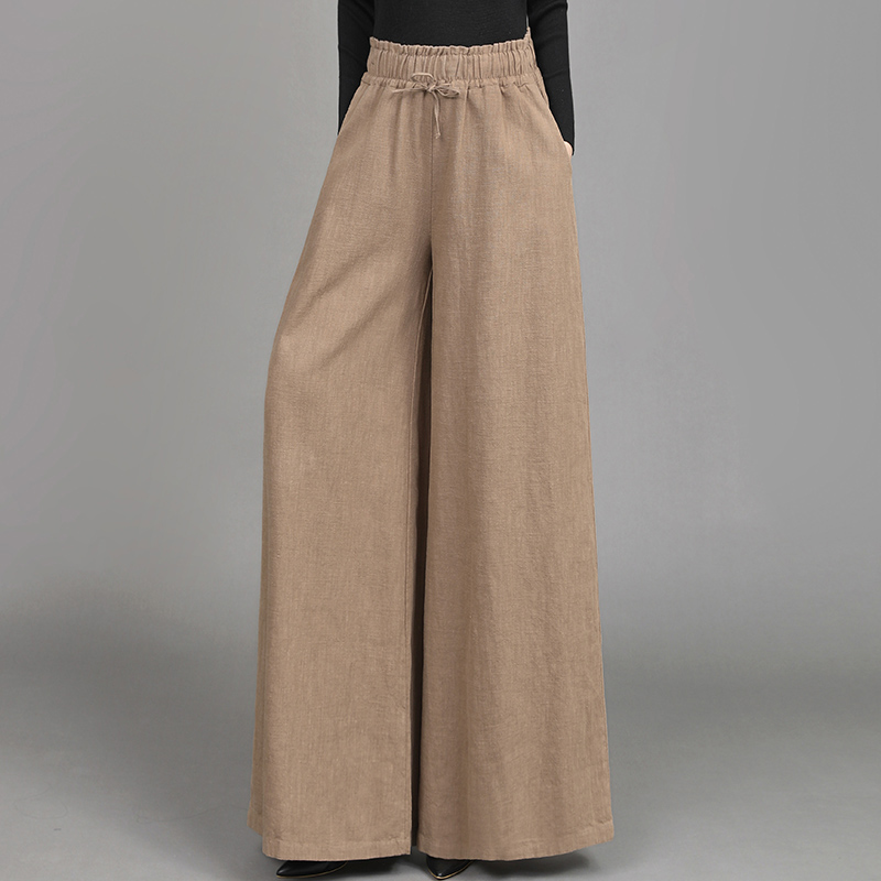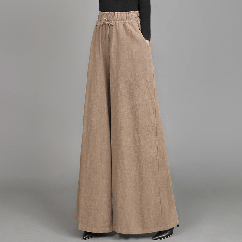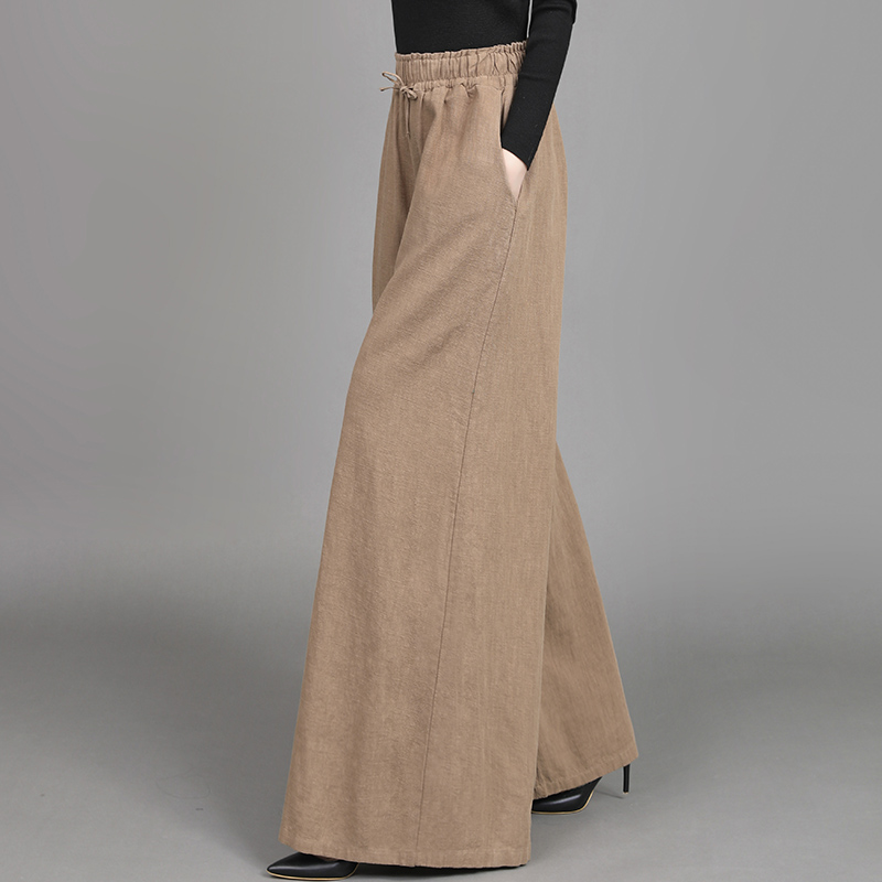 棉麻宽腿文艺大脚裤 宽松复古休闲裤 女春秋2025新款 苎麻高腰阔腿裤