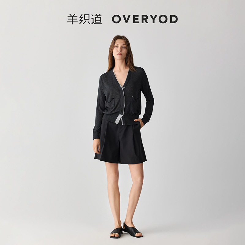 双层门襟灰色外套上衣打底针织开衫 羊织道温泉春款 女 三醋酸