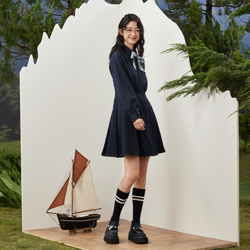 连衣裙辣妹炸街潮流短裙子2025秋新款 Jamor加墨时尚 牛仔长袖