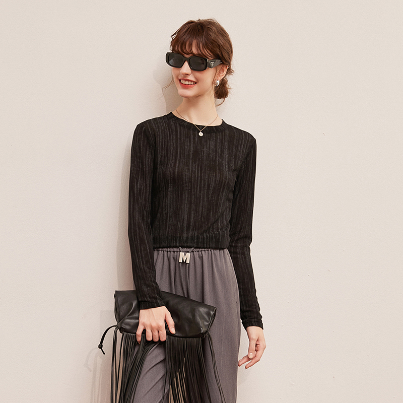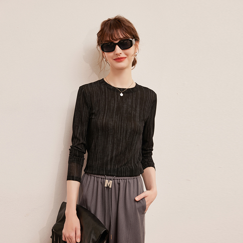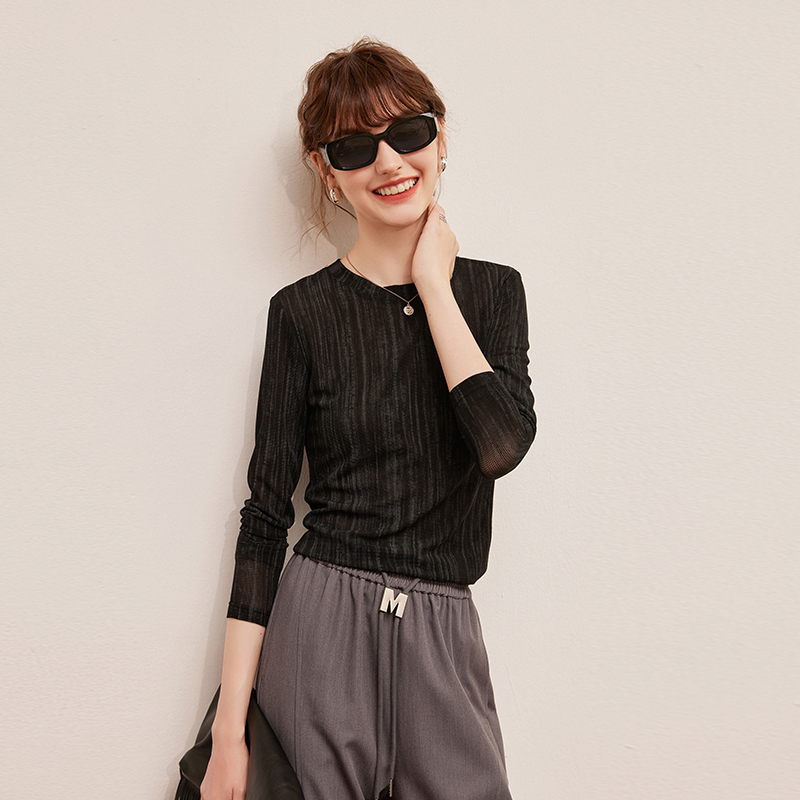 可外穿内搭基础微弹女式 长袖 T恤 圆领印花t恤秋新款 白鹿语时尚