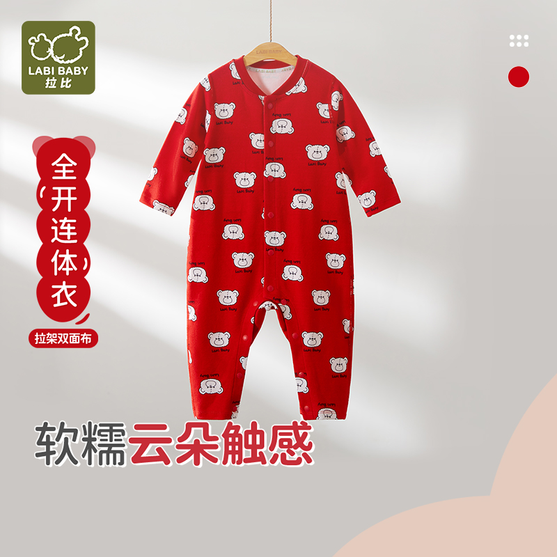拉比婴幼儿连体衣宝宝2025秋冬新款 爬服新生儿满月红色哈衣 长袖