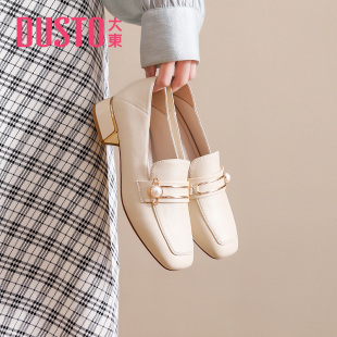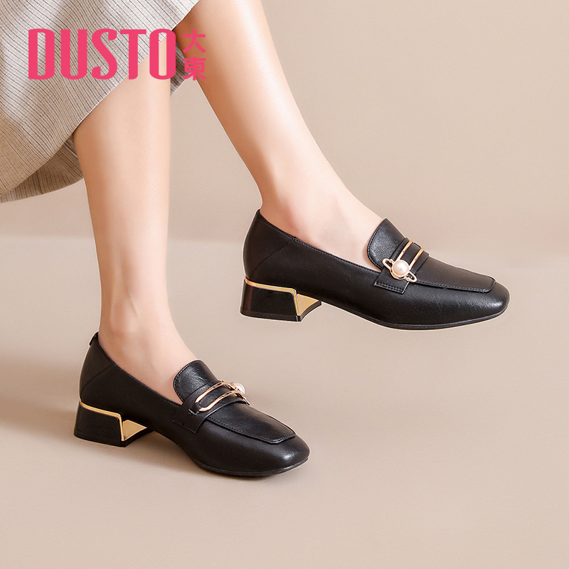 2025秋季 方头粗跟英伦风套脚小皮鞋 新款 法式 通勤 女单鞋 大东乐福鞋