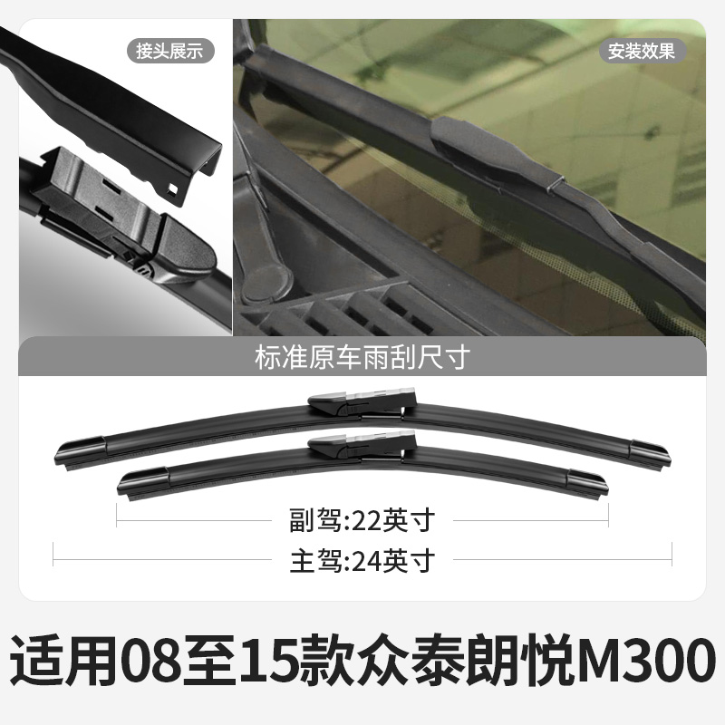 适用众泰朗悦M300雨刮器片10款 09汽车配件专用无骨原厂胶条前雨刷