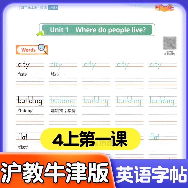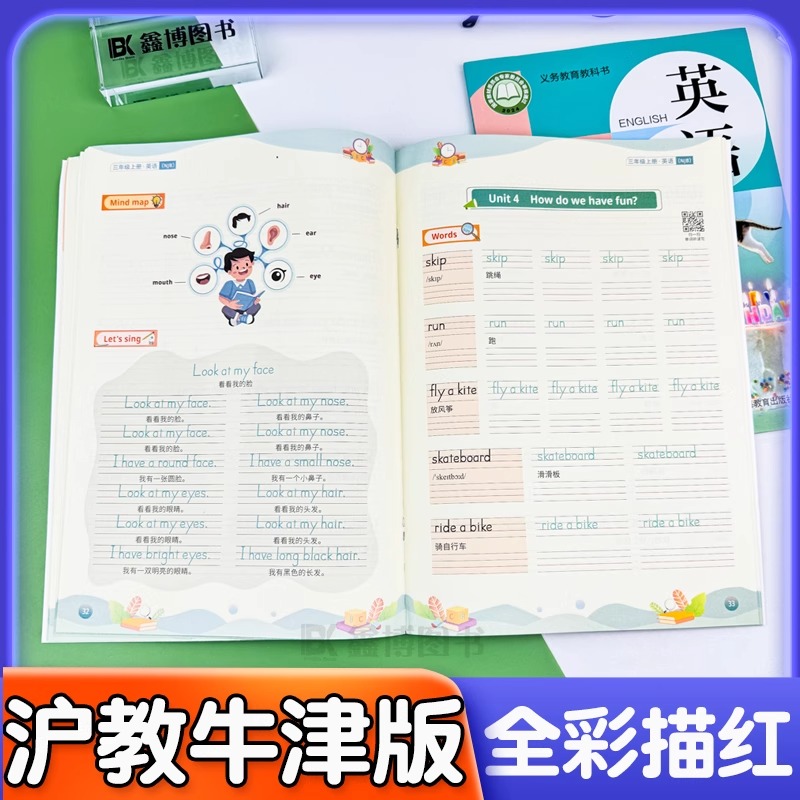 沪教牛津版 英语字帖一二三四五六年级上册下册棍棒体英语课课练描红本课文同步国标体手写体小学生儿童英语外研临摹练字帖邹慕白