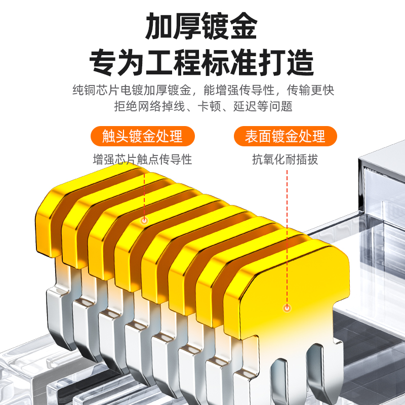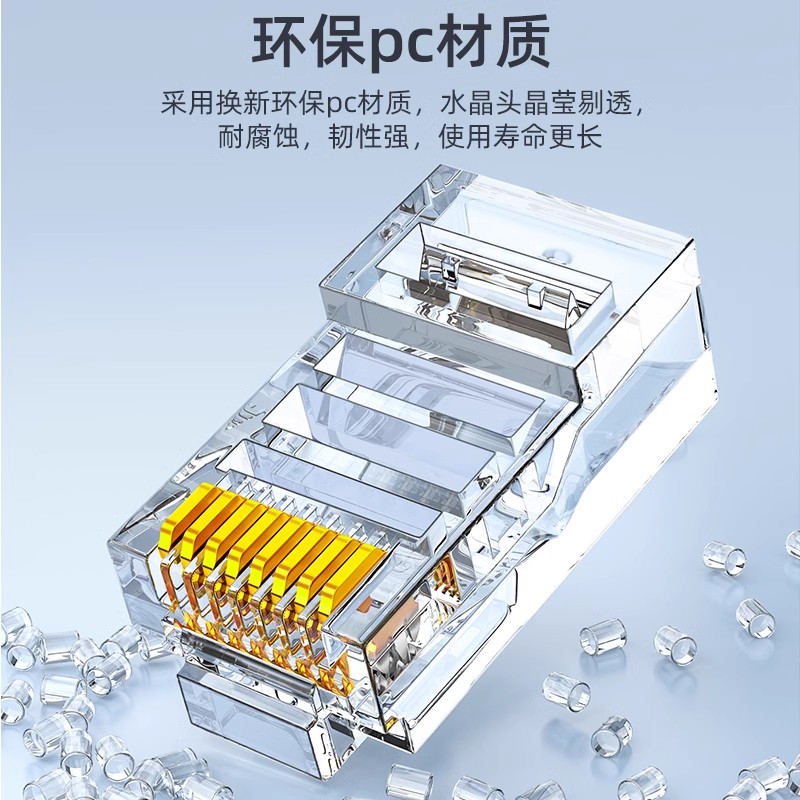 山泽网线水晶头超五类千兆超六6七7类rj45插头监控屏蔽网络对接头