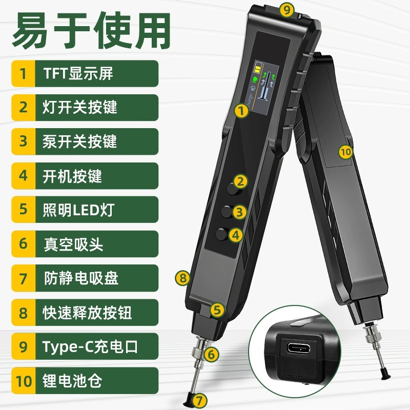 鹿仙子电动真空吸笔吸盘充电小型芯片防静电吸嘴电子元 件迷你吸附