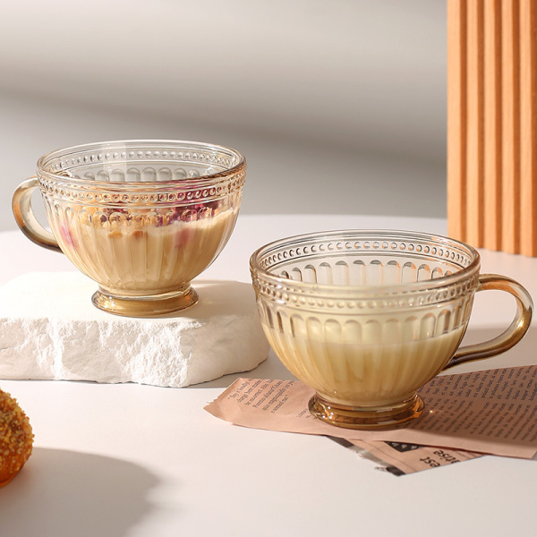 somier太阳花玻璃杯带把手早餐杯高颜值奶茶燕麦牛奶杯子家用水杯