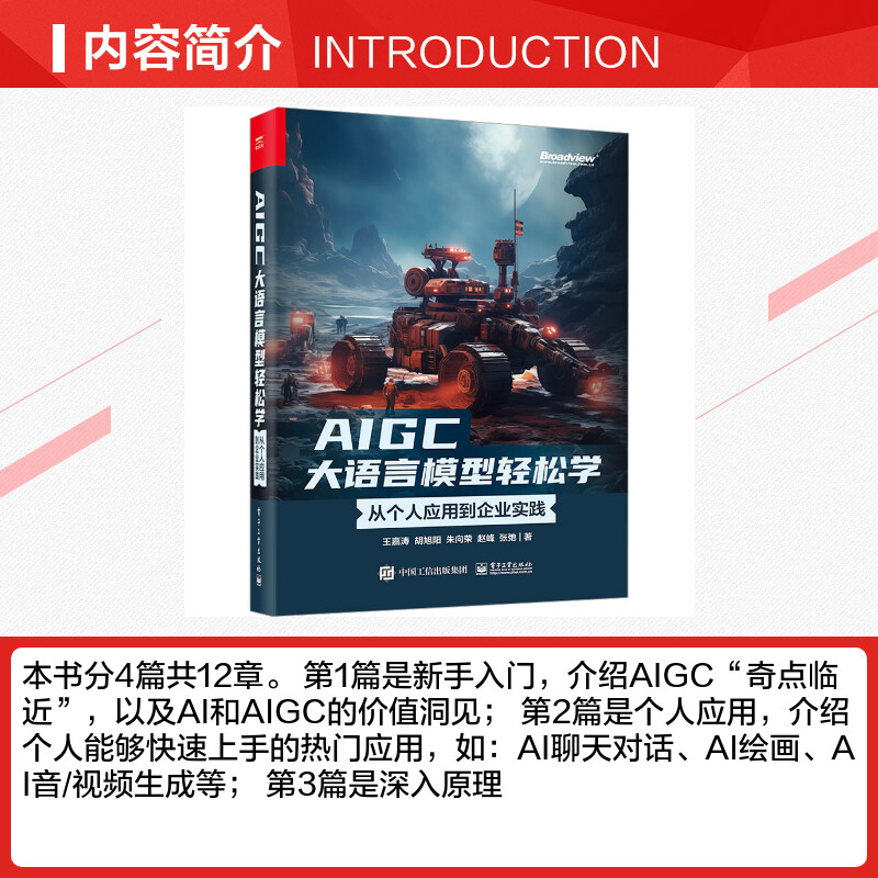 图书籍 社 等 新 专业科技 程序设计 王嘉涛 著 电子工业出版 AIGC大语言模型轻松学: 新华书店正版 从个人应用到企业实践