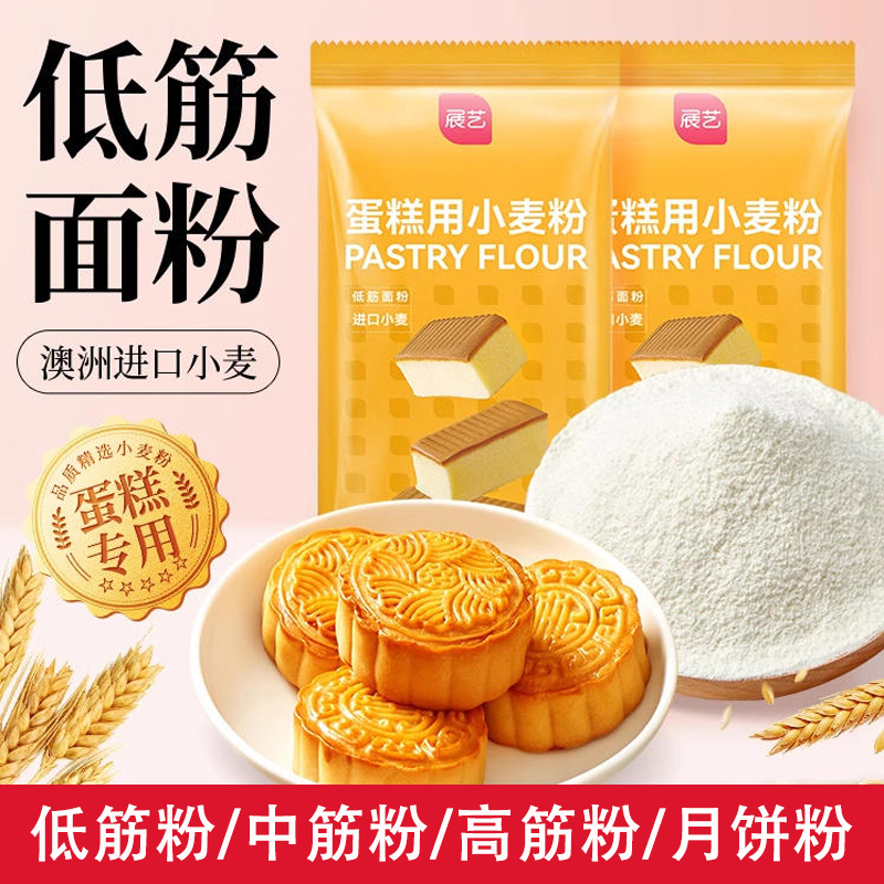 展艺低筋面粉烘焙家用蛋糕粉中筋高筋面粉制作材料广式 月饼专用粉