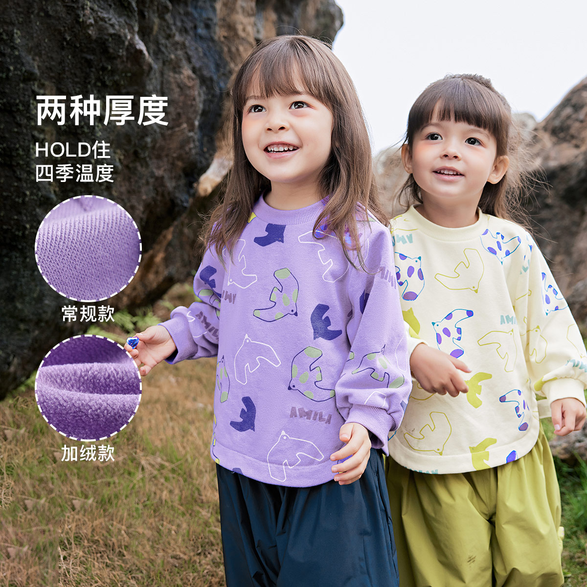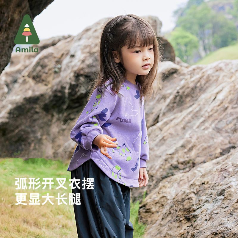T恤上衣 女童宝宝圆领套头满印卫衣休闲长袖 Amila童装 2025春秋新款
