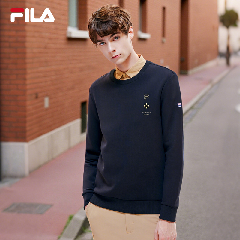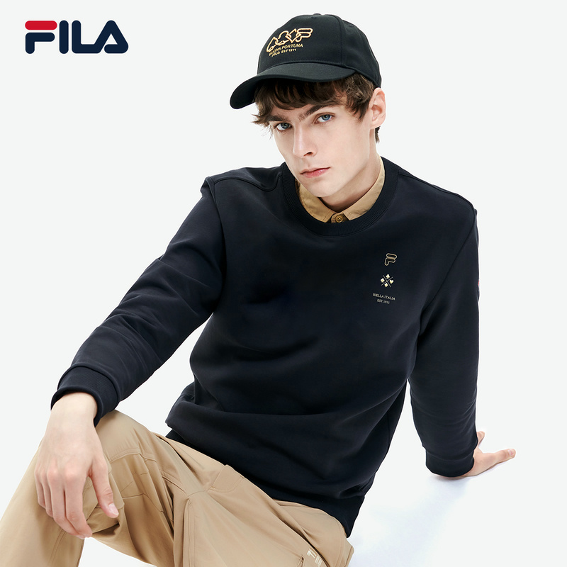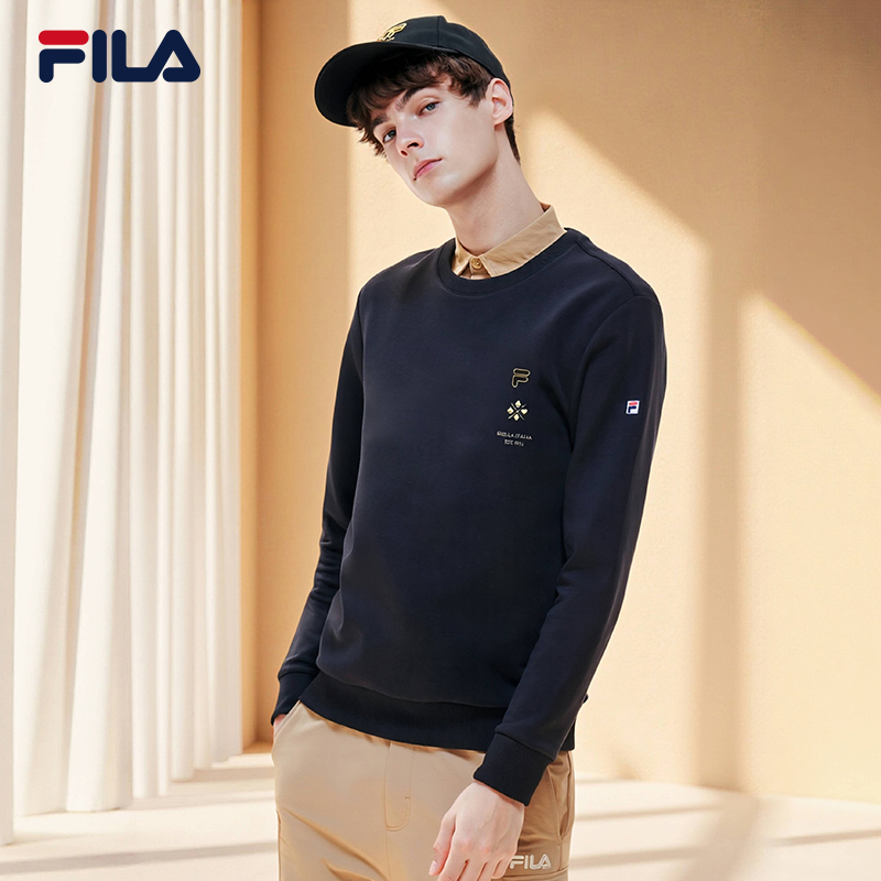 百搭刺绣运动长袖 圆领套头衫 上衣 卫衣男2025秋季 FILA斐乐官方正品