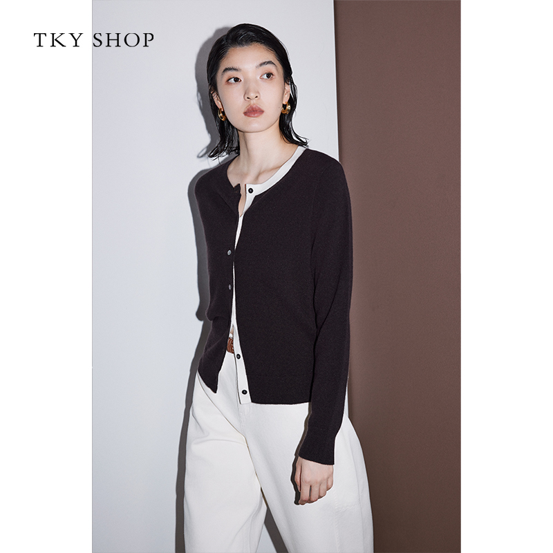 纯棉春秋外套纯色百搭圆领毛衣针织衫 宽松针织开衫 潮 女装 2025新款