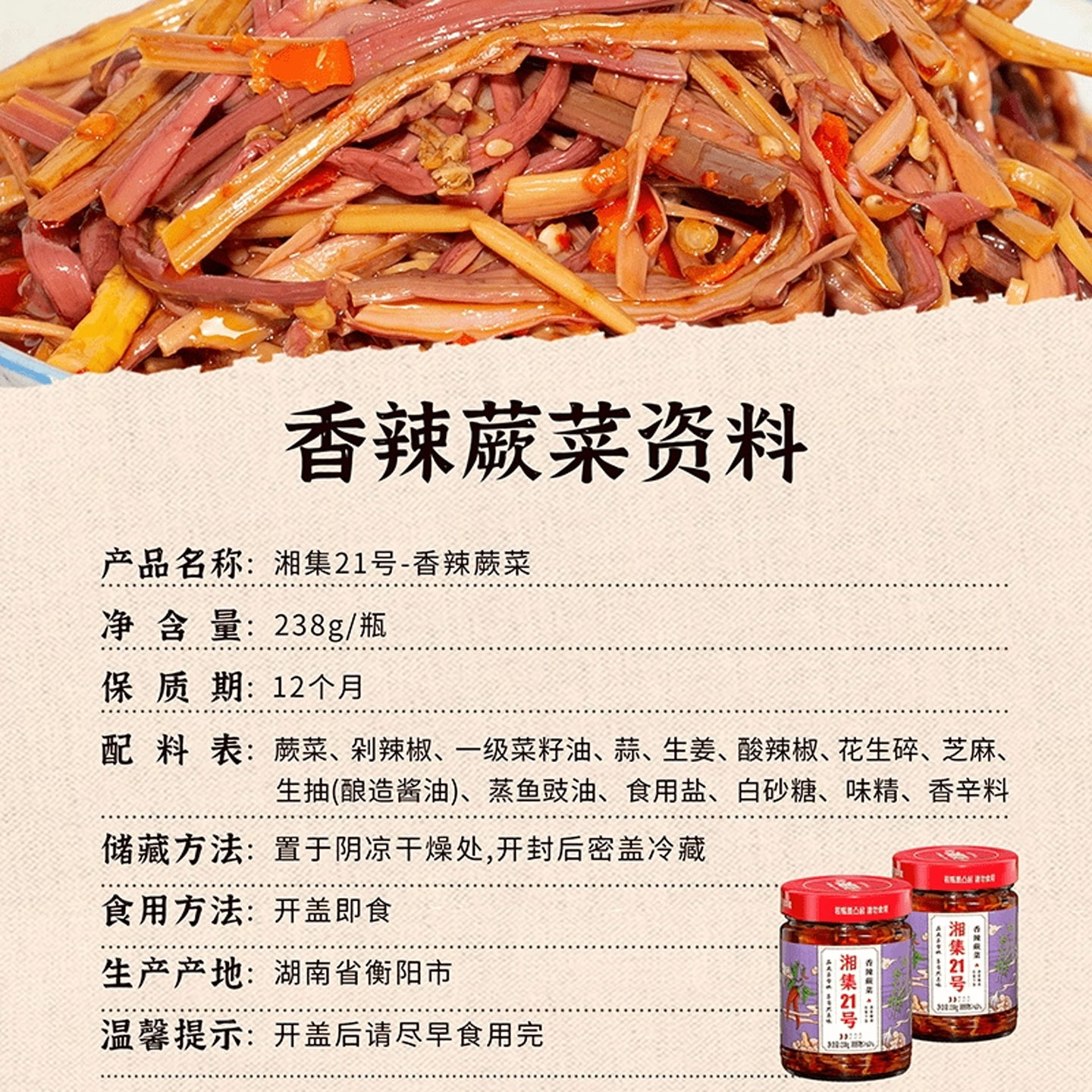 干饭兄弟湘集牌21号香辣蕨菜辣椒酱即食下饭菜剁辣椒蕨菜下酒泡菜
