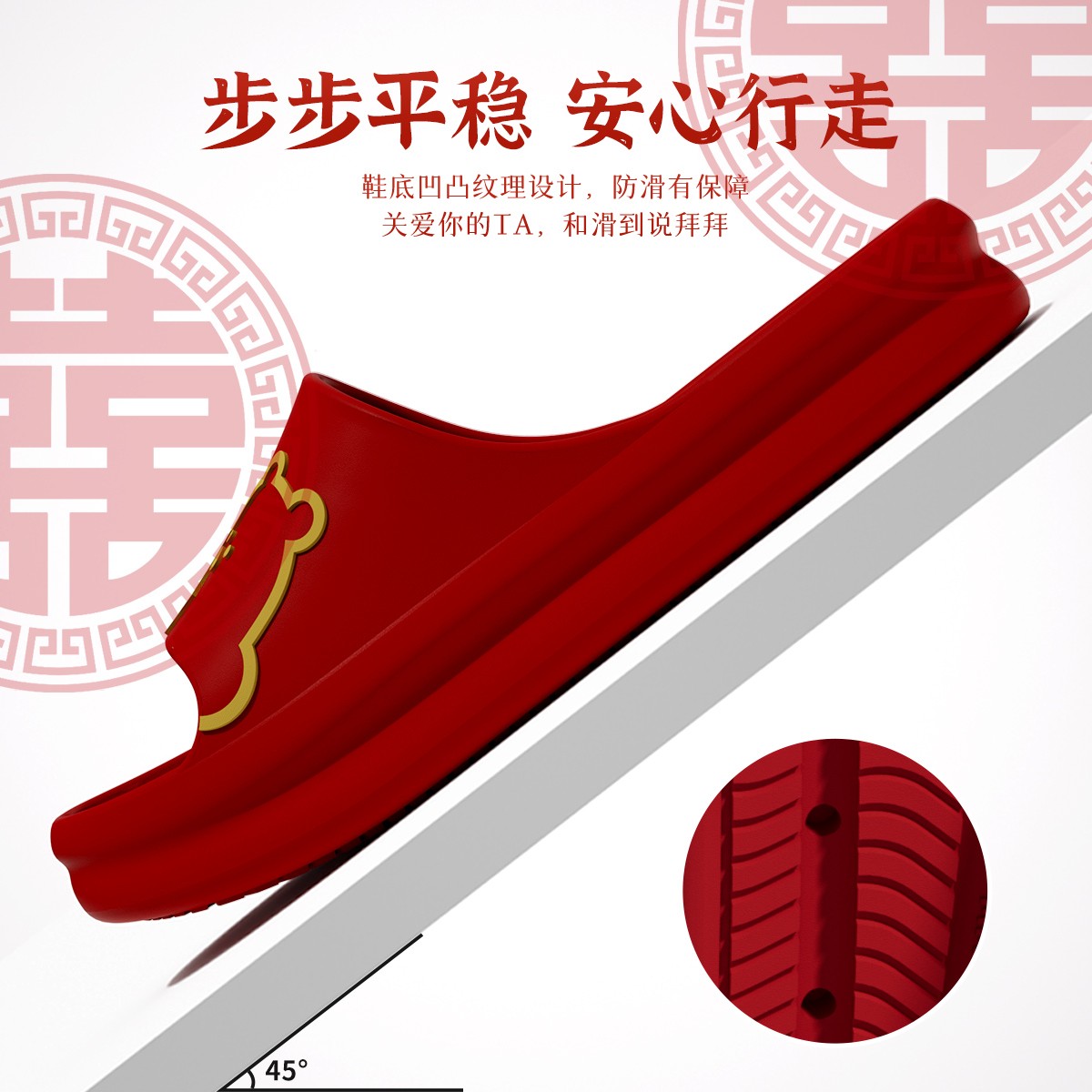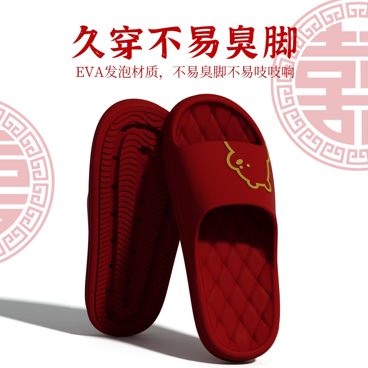 婚庆大红色拖鞋 本命年新婚喜庆晨袍新娘陪嫁凉拖 结婚情侣一对夏季