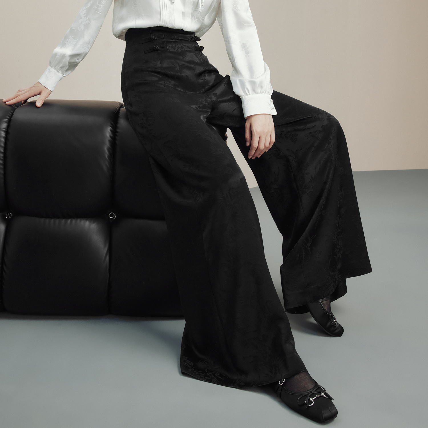 秋冬新款 高腰提花黑色阔腿裤 LIME莱茵新中式 垂感 吉娜同款