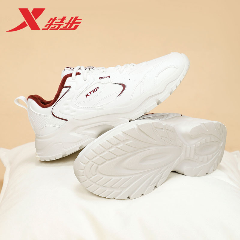2025秋季 增高保暖休闲鞋 新款 官方正品 皮面防水运动鞋 特步加绒女鞋