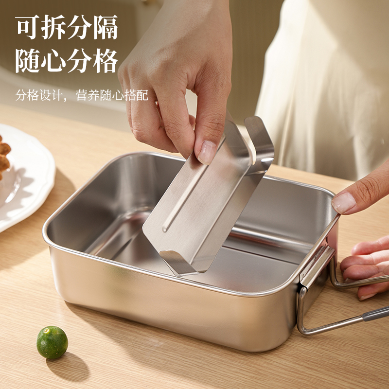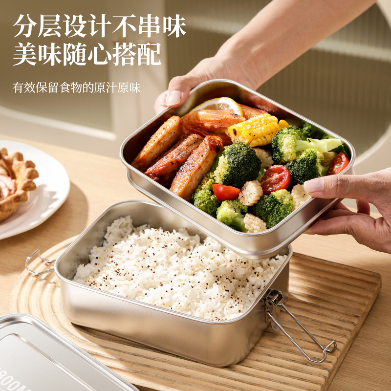 德系饭盒食品级316不锈钢蒸饭盒上班族学生食堂老式 分格打饭餐盒