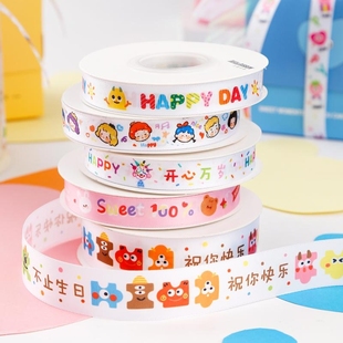生日快乐丝带彩色波点蛋糕彩带包装 礼物儿童卡通幼儿园伴手礼缎带