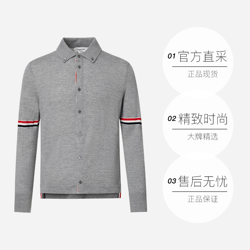自营 翻领羊毛开襟针织衫 Thom 条纹薄款 男 Browne汤姆布朗经典
