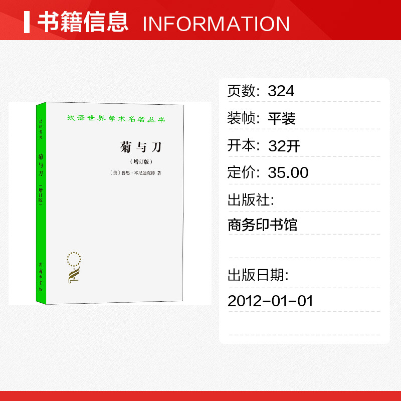 美 鲁思·本尼迪克特 商务印书馆 菊与刀 书籍 增订版 正版 新华书店旗舰店文轩官网 日本文化诸模式