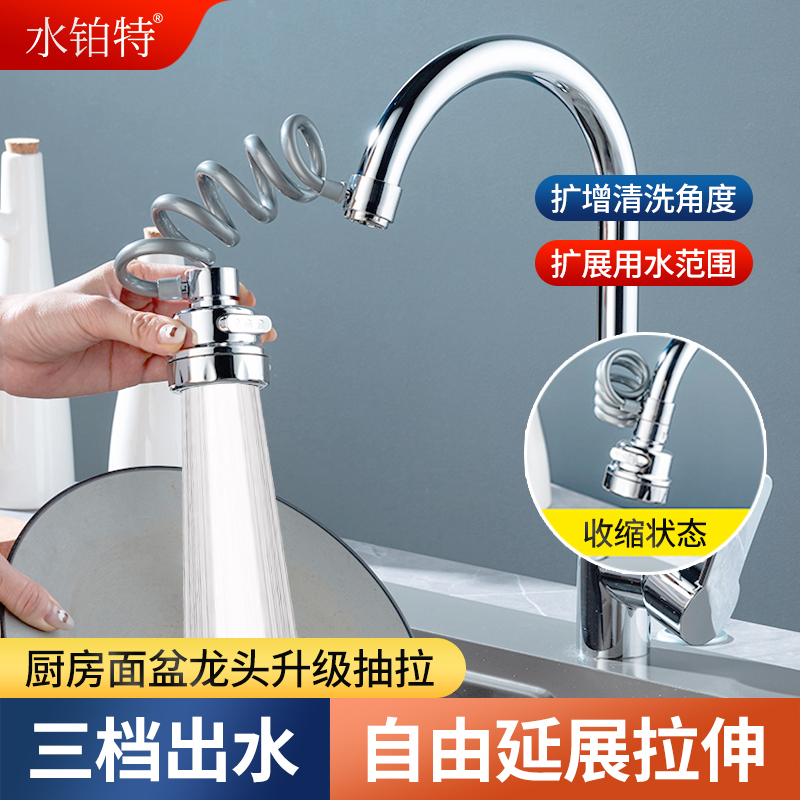 洗面盆水龙头延伸器三档出水嘴洗手盆抽拉式 外接伸缩洗头花洒神器