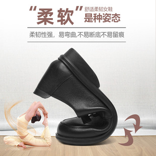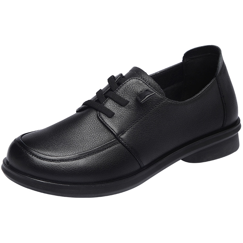圆头女鞋 中年防滑大码 清仓 平底舒适免系带单鞋 旺奈真皮软底妈妈鞋