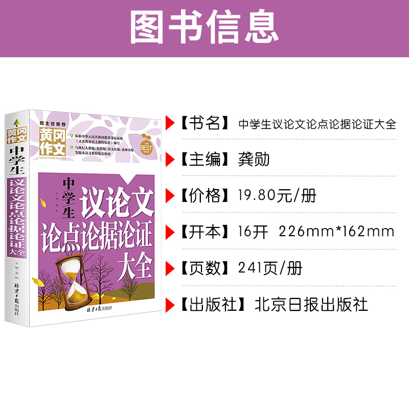 优秀作文论点论据论证手册 初中议论文范文议论文素材范本 中学生中考写作大全辅导作文书 黄冈作文 中学生议论文论点论据大全