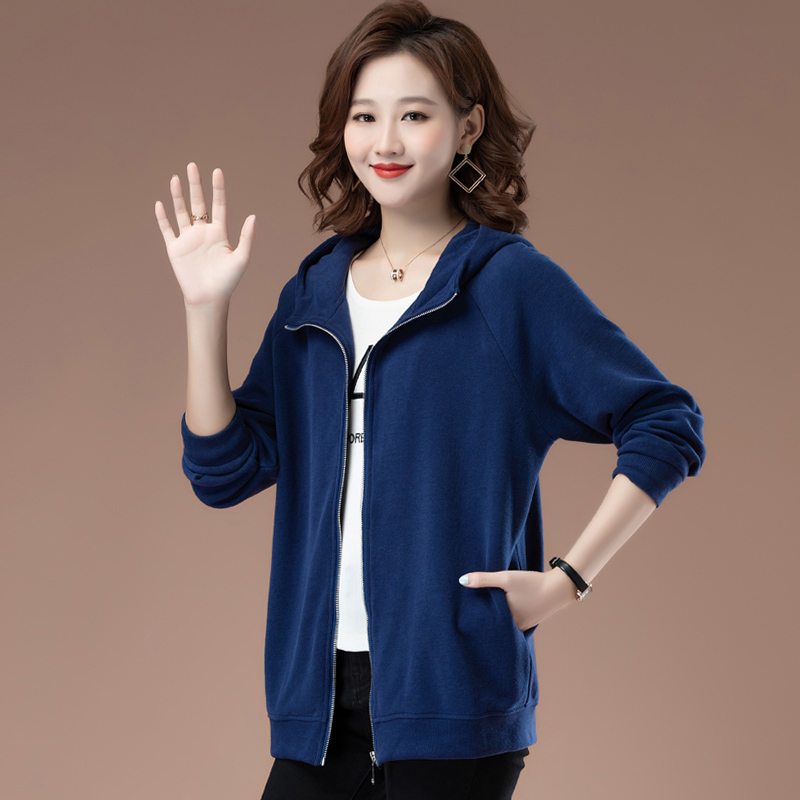 胖mm大码 开衫 运动上衣 中老年妈妈连帽卫衣开春外套女拉链新款 时尚