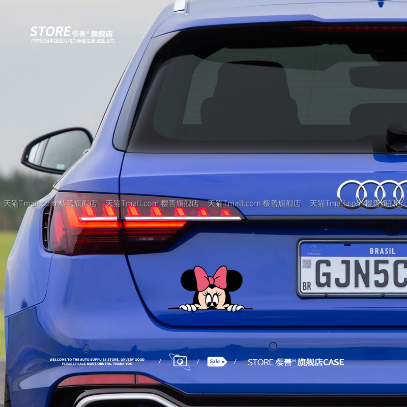 米老鼠车贴遮挡划痕电动车装 饰摩托车汽车贴纸轮眉保险杠防水车身