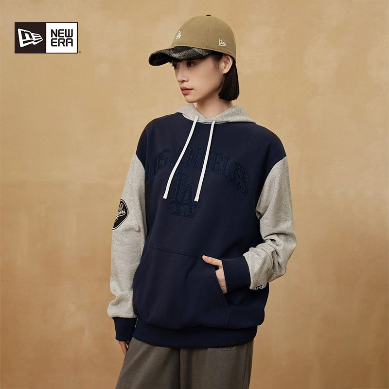 复古 连帽秋oversize刺绣字母上衣美式 森马卫衣女中长款 撞色插肩袖