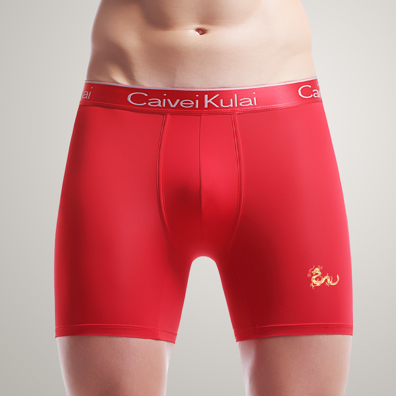 防磨腿大红色平角裤 冰丝速干透气丝滑加长款 内裤 龙蛇年本命年男士