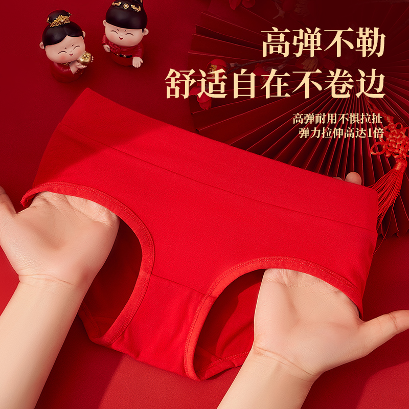红色三角裤 有棵树莫代尔内裤 女纯棉全棉裆抗菌无痕透气中高腰大码