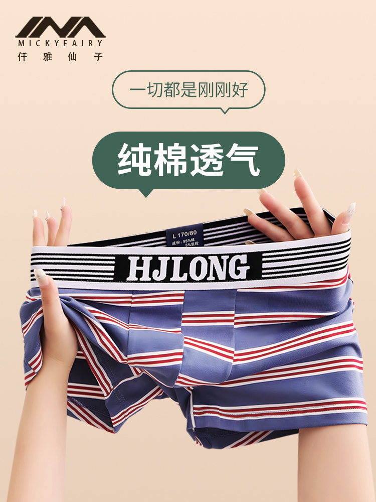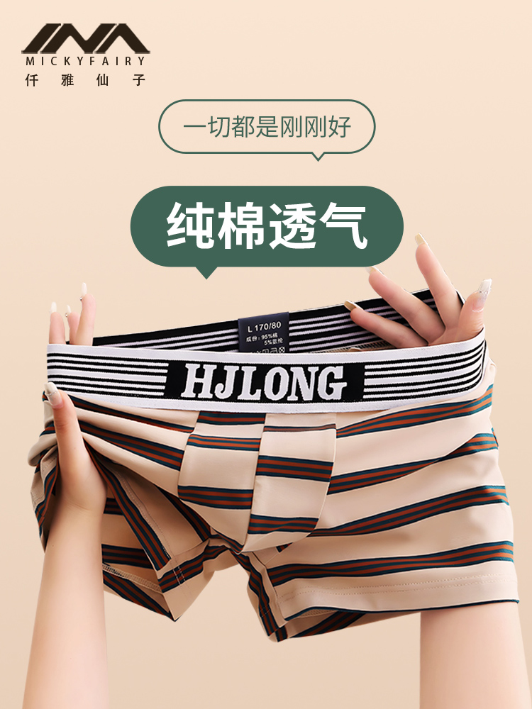 男纯棉秋冬平角裤 内裤 条纹短裤 男款 头 新款 男生运动潮流四角裤 男士