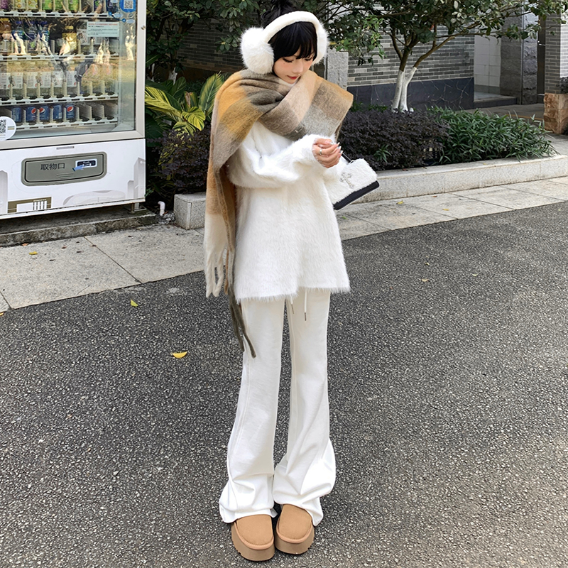 高腰宽松加绒休闲裤 小个子束脚卫裤 子 女春秋冬2025新款 白色运动裤