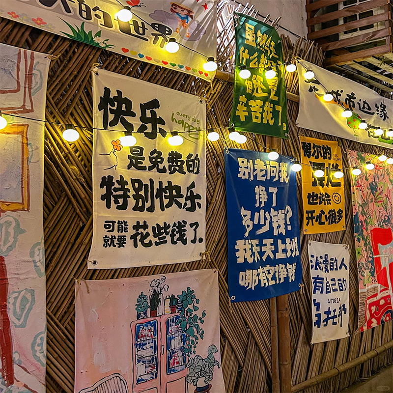 户外露营挂布趣味文字创意背景布装 饰网红营地野餐氛围感布置挂毯
