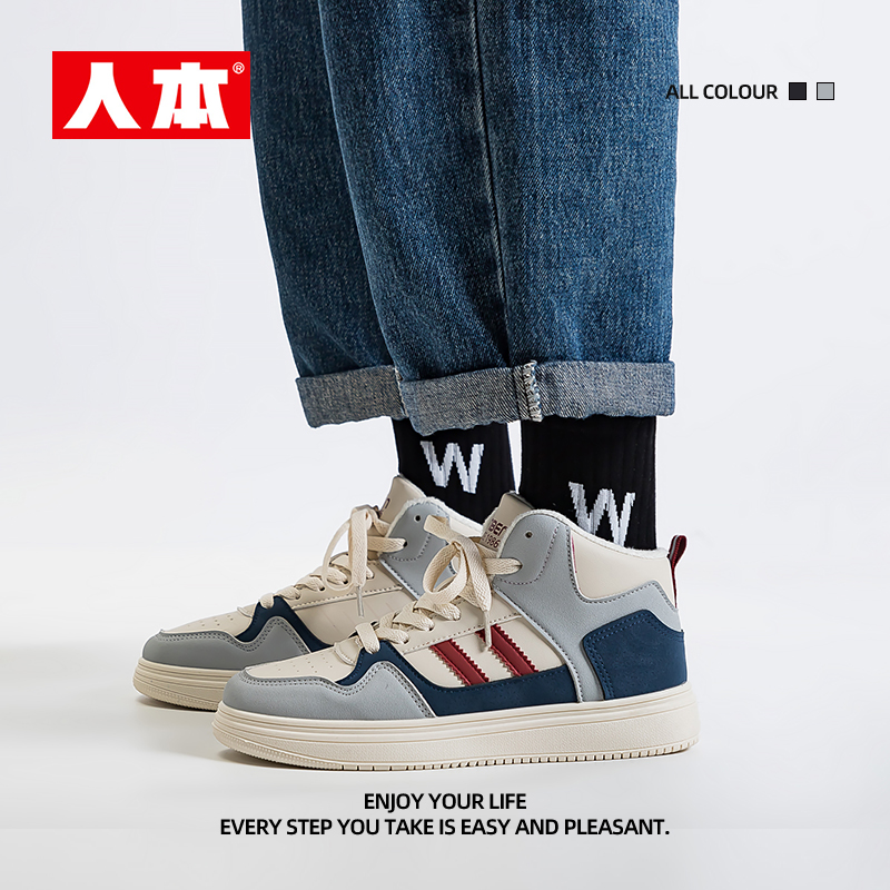 休闲保暖板鞋 人本加绒高帮鞋 厚底二棉鞋 秋冬加厚爆款 子 女2025新款