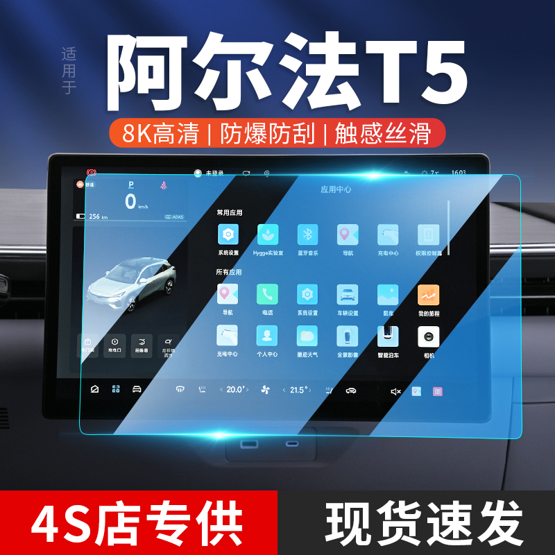 适用极狐阿尔法T5汽车导航屏幕钢化膜改装 中控显示仪表保护贴内饰