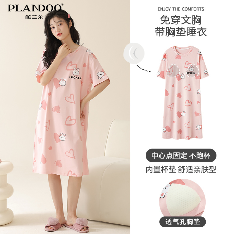 睡衣可外穿卡通家居服 连衣裙短袖 帕兰朵带胸垫纯棉睡裙女夏季 新款