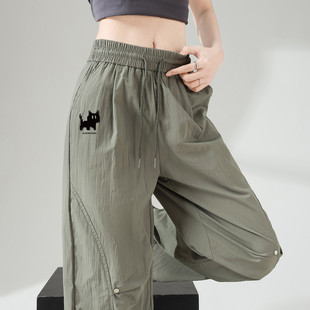 百搭舒适休闲裤 ILOVECHOC运动风2025猫咪印花春夏冰丝薄款 长裤