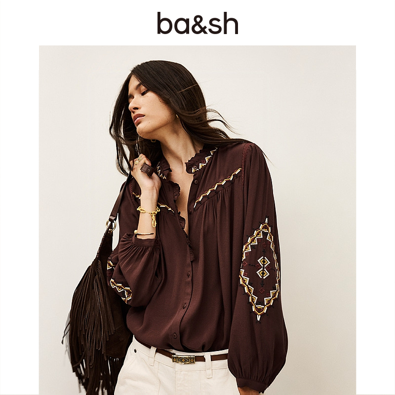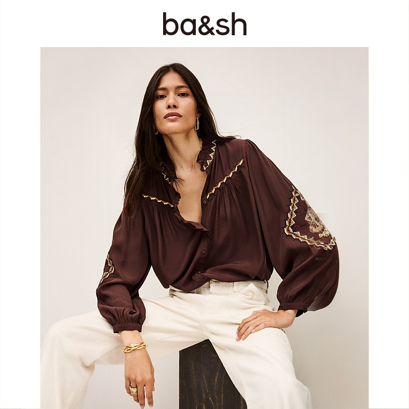 百搭小衫 衣纱布菲纯斓 女蕾丝边优雅泡泡袖 白色衬衫 上衣 秋季