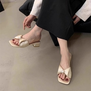 配裙子凉拖凉鞋 法式 子2025夏季 女鞋 中跟防滑 高级粗跟外穿拖鞋