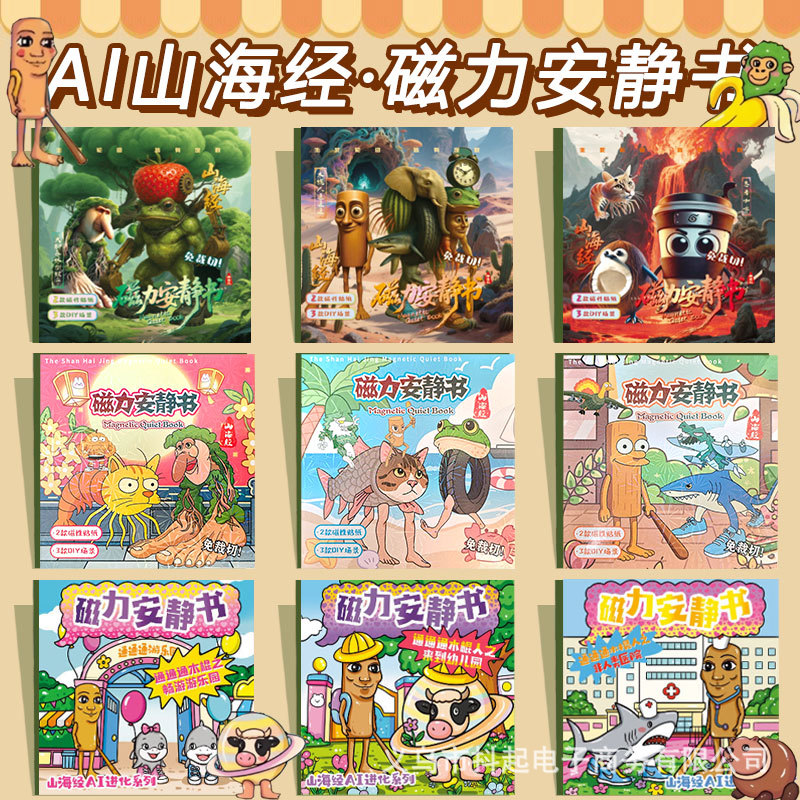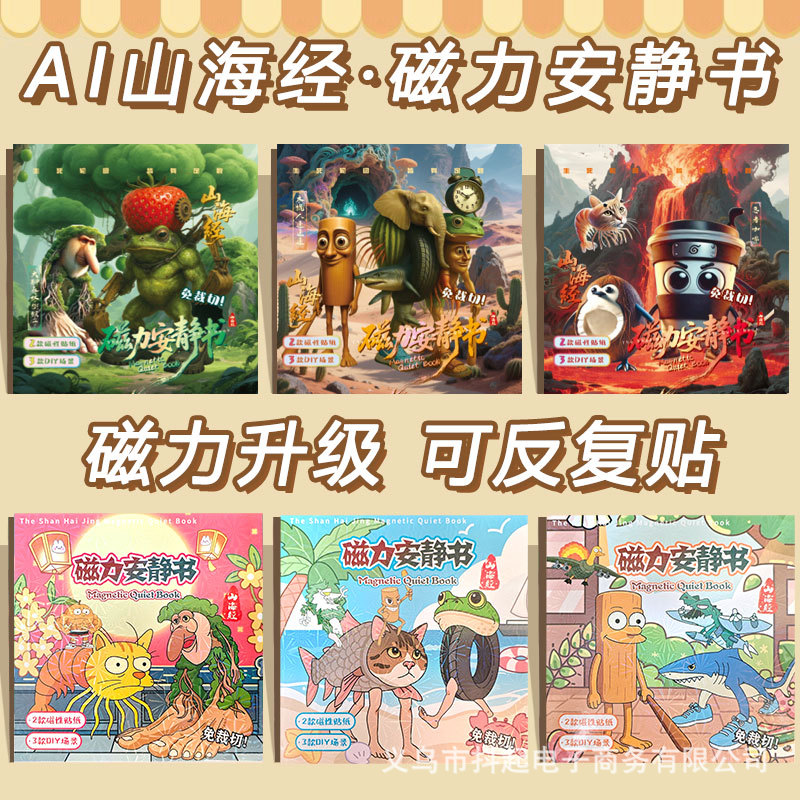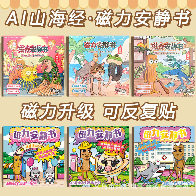 新款 AI山海经磁力安静书免裁剪儿童男孩女孩磁吸贴玩具大号玩具书